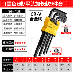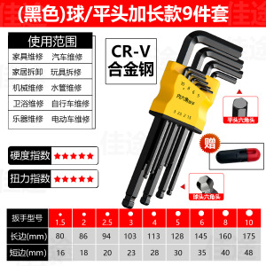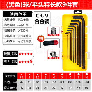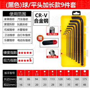 防爆盒装【加强闪耀黑】加长款平头/球头双功能九件套