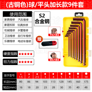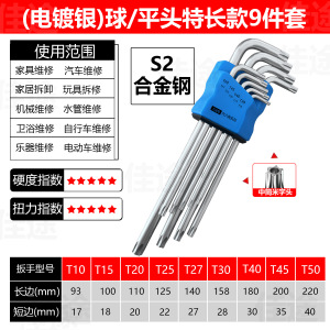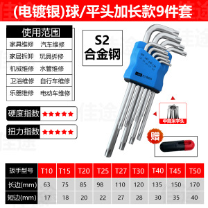防爆盒装【S2高强硬度】特长款平头/球头双功能九件套