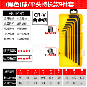 防爆盒装【加强闪耀黑】特长款平头/球头双功能九件套
