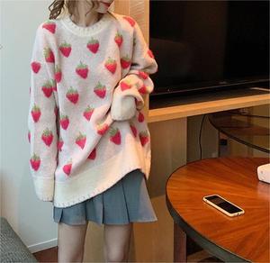 水蜜桃套头毛衣女2025秋冬女装慵懒风宽松外穿圆领百搭针织上衣女