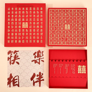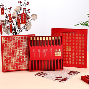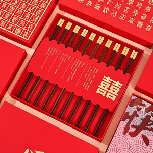 现货红色乔迁暖居结婚木筷子中式包装盒空盒十双手提钛筷子礼品盒