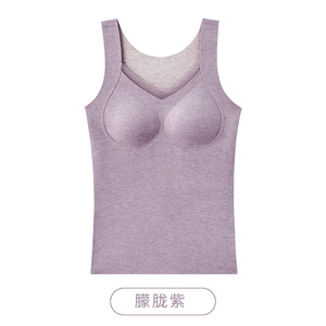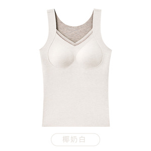 德绒蚕丝保暖背心女款加绒加厚带胸垫免穿内衣可外穿打底吊带上衣