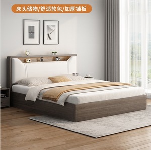 现代简约实木板床家用主卧双人大床1.8米出租屋简易床1.2米落地床