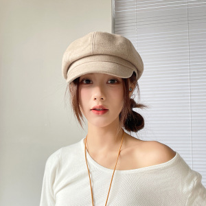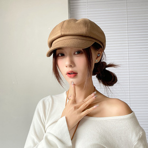 2025新款亮片字母八角帽复古时尚百搭女秋冬画家帽报童帽子显脸小