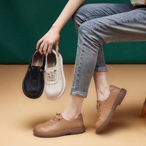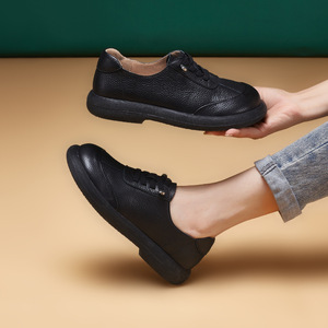 2025秋季新款手工头层牛皮乐福鞋女休闲运动鞋复古舒适妈妈单鞋