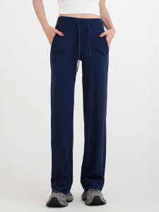 露露女士运动长裤亚洲版型高腰瑜伽裤女弹力显瘦直筒裤无标黑色裤