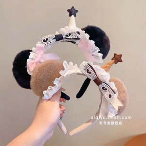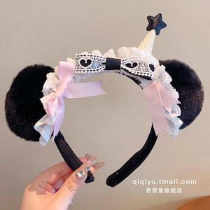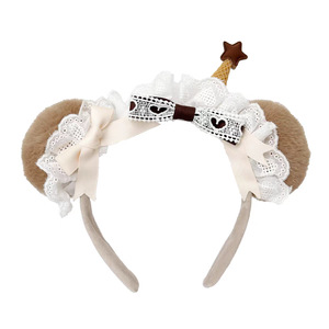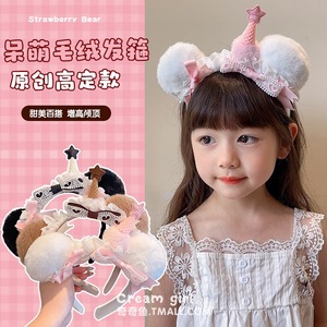 可爱毛球冰淇淋小熊儿童发箍蝴蝶结蕾丝趣味女童头箍不压发发饰