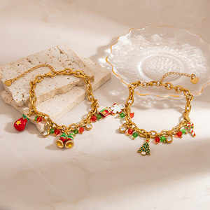 跨境圣诞手链铃铛圣诞树手套吊坠圣诞系列高级感18K金保色手饰