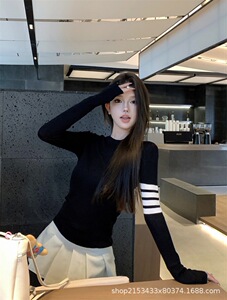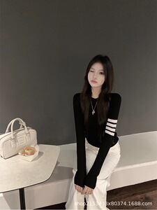 高定版TB极简风针织衫25新款学院风复古条纹长袖修身上衣
