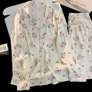 甜美卡通云朵棉睡衣女春秋季长袖长裤学生少女感可外穿家居服套装