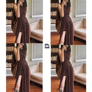 法式复古重工无袖编织感设计开衩长裙女连衣裙背心裙子