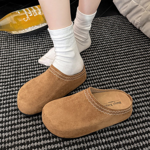 复古增高厚底勃肯拖鞋女2025秋季新款一脚蹬包头半拖懒人沙滩凉拖