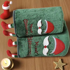 新款圣诞节珊瑚绒精美刺绣老人雪人麋鹿圣诞树毛巾浴巾节日礼品