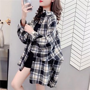 2025新款港风复古格子衬衫气质通勤时尚小众宽松百搭衬衣长袖外套