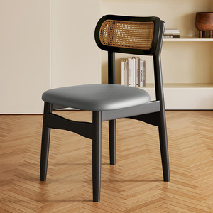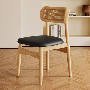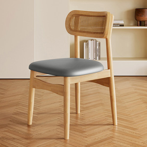 法式复古实木靠背餐椅中古休闲家用酒店民宿藤编椅子高级感凳子
