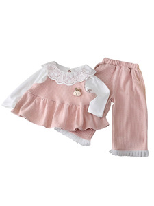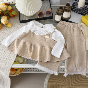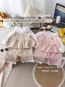 儿童雪尼尔花边领三件套2025秋季新款蕾丝花边套装宝宝可爱秋装