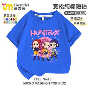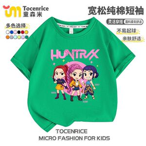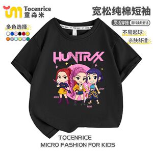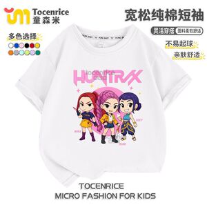 kpop demon hunters猎魔女团圆领短袖夏季宽松T恤中大童休闲上衣