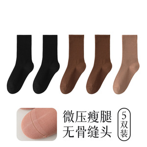 春秋新款袜子女微压显瘦高橡筋运动防滑大地色无骨耐磨抗起球中筒