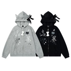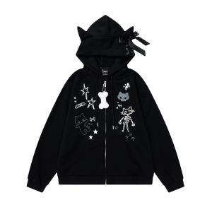 Mint Miaow 25秋季新品美式可爱猫咪元素设计连帽卫衣外套