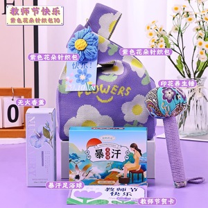 教师节快乐紫色花朵针织包12
