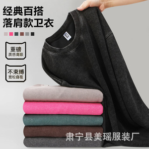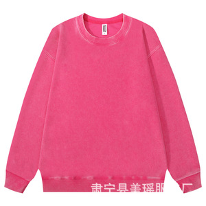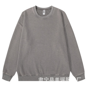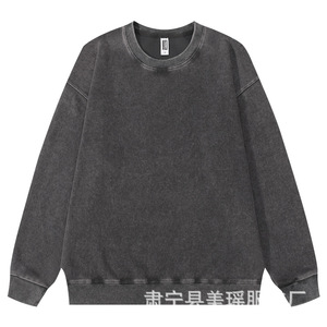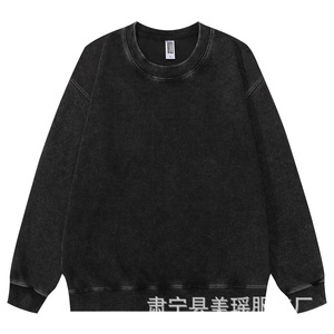 跨境360克水洗做旧圆领卫衣美式复古高街圆领卫衣长袖炒雪花上衣