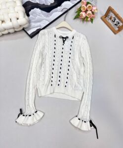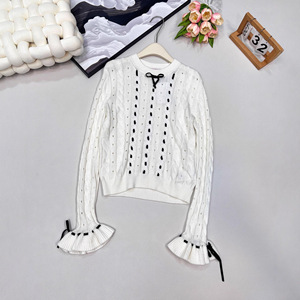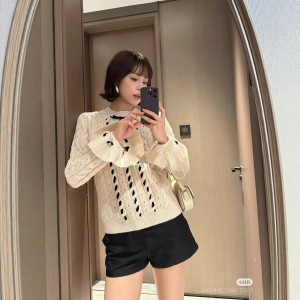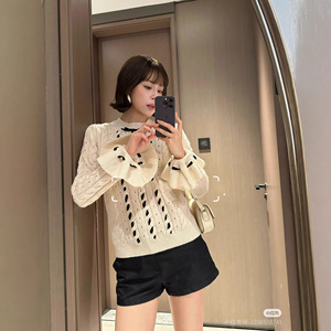 2025早秋新款南油va时髦优雅气质百搭修身减龄蝴蝶结圆领长袖毛衣