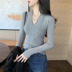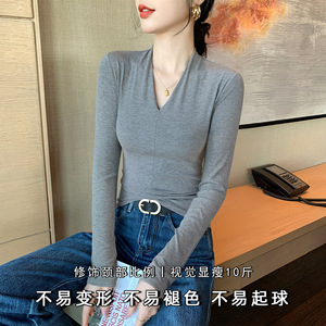 黑色V领打底衫女内搭早秋季高级感长袖正肩T恤设计感小众洋气上衣
