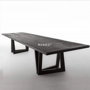loft设计师办公桌实木大板桌简约复古会议长桌工作台桌商务洽谈桌