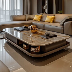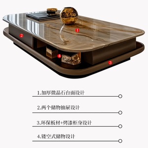 现代茶几轻奢高级感微晶石创意设计师别墅平层大户型客厅加长茶几