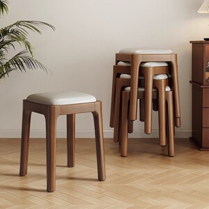 餐椅家用小户型餐凳不占地方可叠放凳子中古风方凳实木餐桌椅子