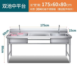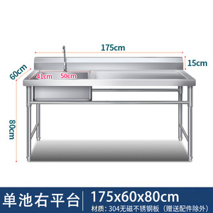 不锈钢商用水槽厨房水槽一体台面洗衣台洗菜洗衣洗碗洗手水池
