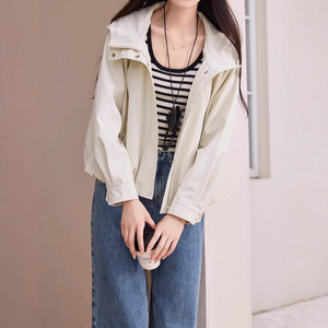 休闲连帽风衣女2025秋季新款韩系小个子工装短款外套F805a305