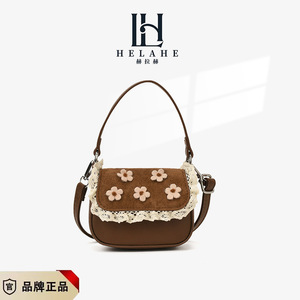 儿童包秋冬新款复古磨砂迷你马鞍包女童蕾丝花朵手拎包亲子斜挎包