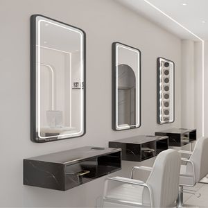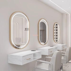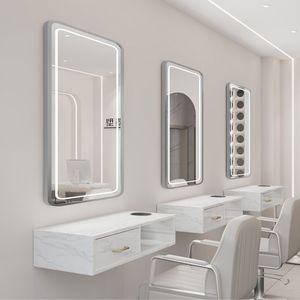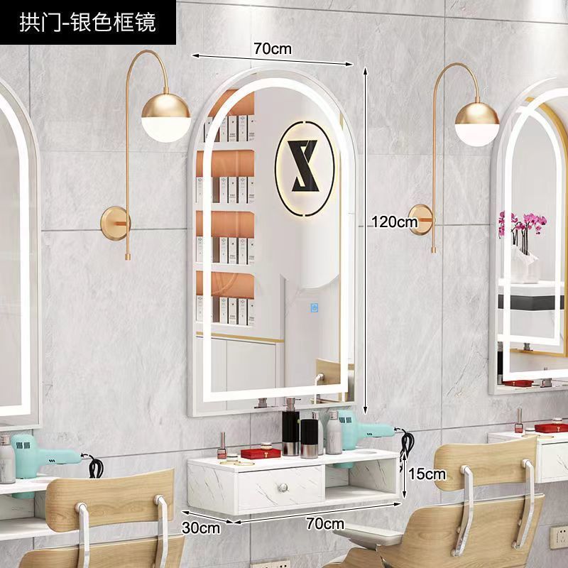 网红理发店镜台美发店镜子发廊专用带灯挂墙潮款壁挂式烫染剪发镜