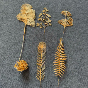 仿真金色波斯叶年宵花福桶材料金色花材银杏叶尤加利塑料假花批发