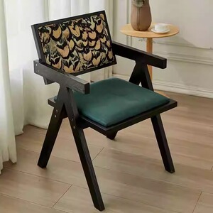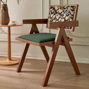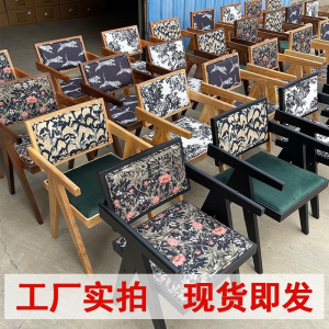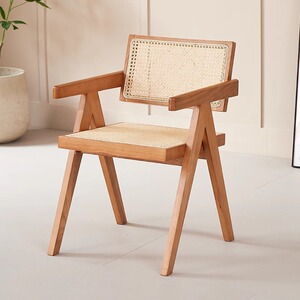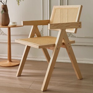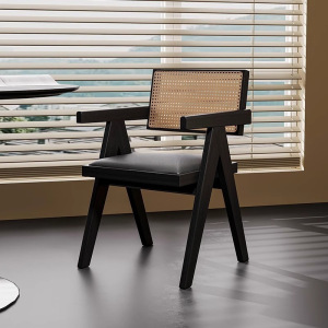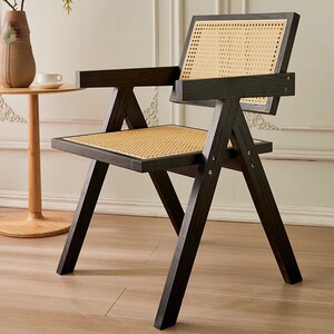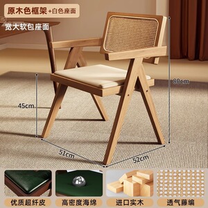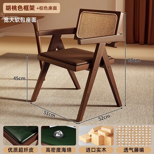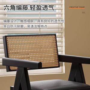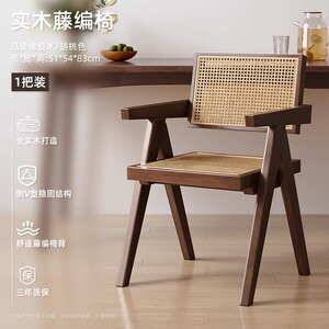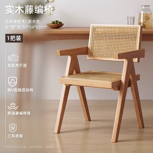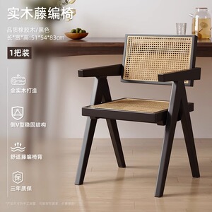 中古侘寂风昌迪加尔藤编椅子实木餐椅家用餐桌椅软包扶手靠背凳子