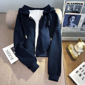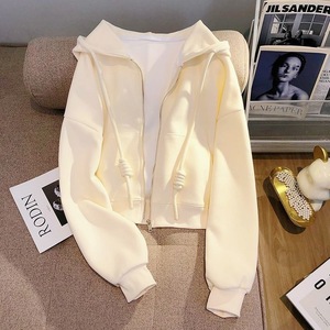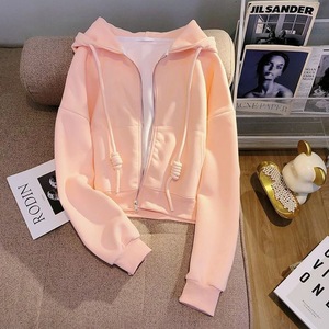 连帽卫衣宽松款奶小个子学院风开衫拉链短款秋季新款外套女薄