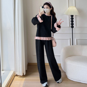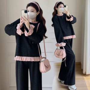 孕妇韩系小香风木耳边卫衣阔腿裤+韩版休闲时尚长裤秋季新款套装