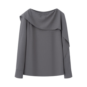 2025秋新款百搭荷叶领拼接长袖衬衫女设计感气质减龄上衣E466690