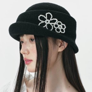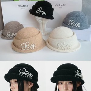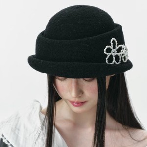 珍珠花朵针织贝雷帽女秋冬2025新款显脸小优雅千金赫本风礼帽时尚