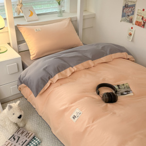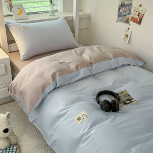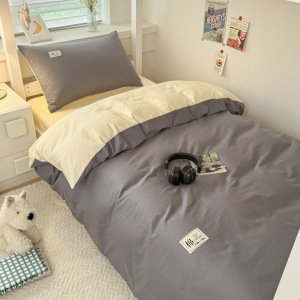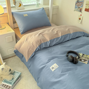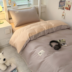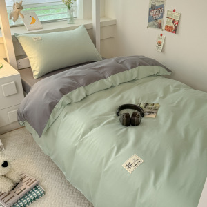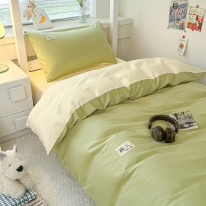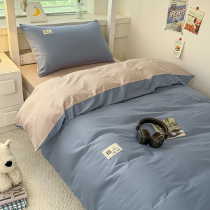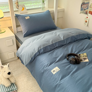大学生宿舍纯棉四件套100%全棉床单被套纯色床笠款学生三件六件套