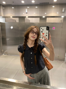 荒荒家 珍妮短袖翻领上衣2025夏季新款法式复古温柔风修身小衫T