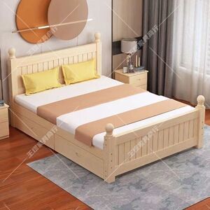 全实木床现代简约.主卧双人大床出租房用单人床米米简易床