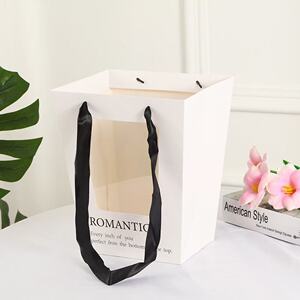 网红梯形手提袋开窗英文鲜花梯形礼品袋花店收纳神器七夕情人节装