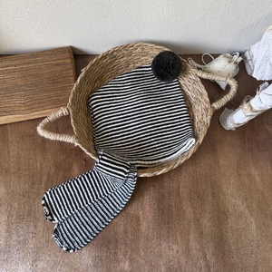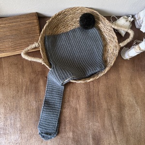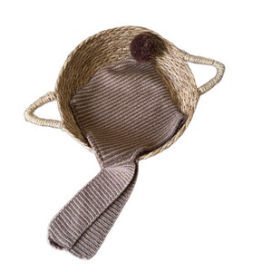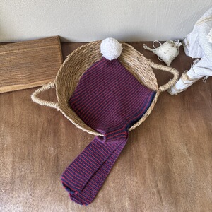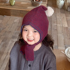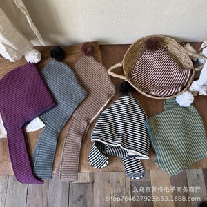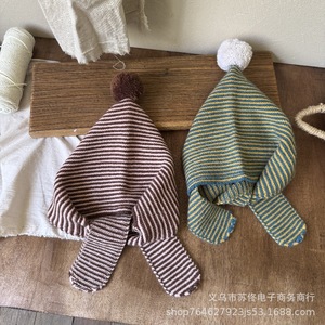 复古条纹帽子围巾一体针织包头帽批发秋冬男女童户外保暖护颈帽子