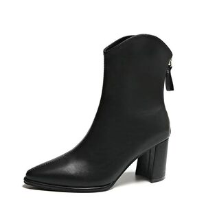 2025秋季新款短靴女尖头瘦瘦靴韩版短筒百搭粗跟时尚高跟马丁靴码