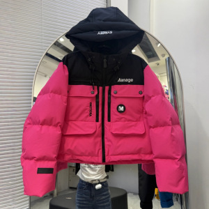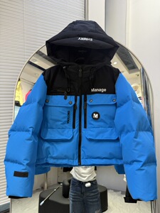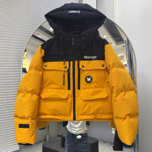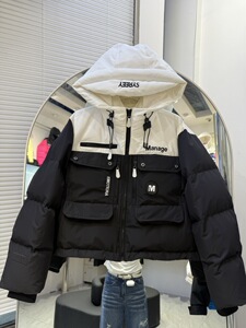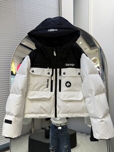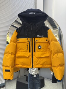 潮牌短款工装羽绒服女装字母白鸭绒2025秋冬新款连帽拼接撞色外套