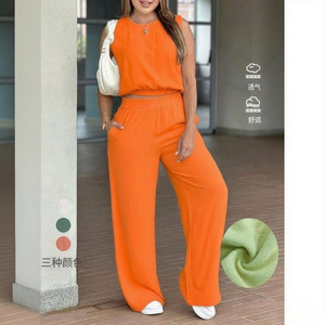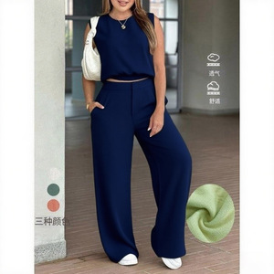工厂跨境包邮25亚马逊时尚休闲女装套装 棉质上衣T恤长裤欧美女士