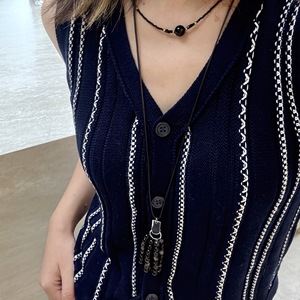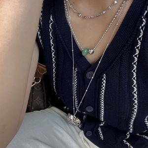 钛钢项链欧美老钱风项链豹纹个性百搭爱心长款项链天然石锁骨链新