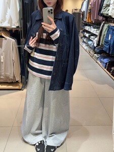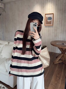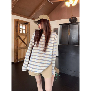 慵懒圆领条纹长袖T恤女2025春秋新款松弛感宽松打底衫百搭上衣nis